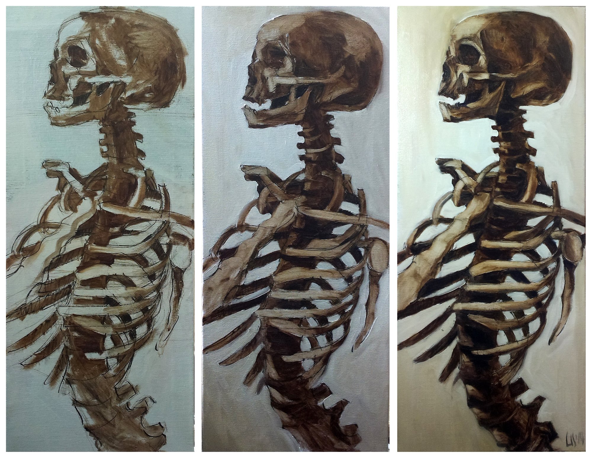 Grzegorz ukończył studia na kierunku Edukacja Artystyczna z Zakresu Sztuk Plastycznych, broniąc swój dyplom na pracowni malarstwa. Od czasu studiów namiętnie maluje, głównie portrety i czaszki. Inspiracji często szuka w sztuce filmowej. Niektóre z jego prac możecie teraz kupić na Etsy.